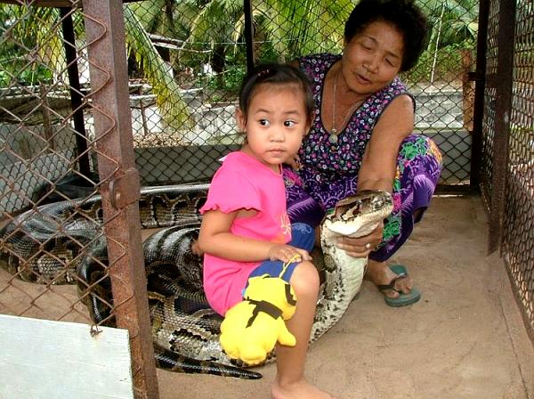 Uorn Sambath, a 7-year-old Cambodian boy, sleeps on his female python. The boy has built a deep bond of affection with his five-metre long python for the past seven years