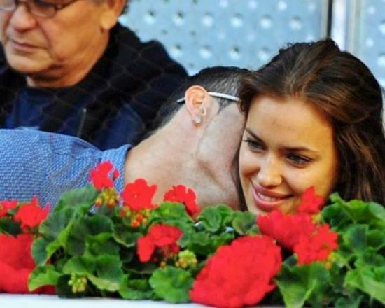 Irina Shayk and Ronaldo, at Madrid Masters Tennis Tournament — Cristiano Ronaldo and Iker Casillas appear to be doing battle in a mixed doubles sm00ching match with their girlfriends. The Real Madrid goalie got off to a flyer with a ki$$ from Sara Carbonero. But team-mate Ronnie drew level when Irina Shayk tenderly stroked his face, sparking a flurry of canoodling on both sides. It was a close contest but it seems love was the winner.