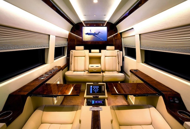 It may surprise you to know what type of vehicle this luxurious interior belongs to. It's not a jet, or a limo, but rather a Mercedes Benz Van. Called JetVans, the high end interiors of these vehicles were designed by Becker Automotive Design and take inspiration from private planes.